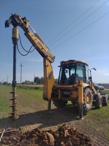 1. ЯМОБУР на базе экскаватора-погрузчика, диаметр буров: 250 мм, 300мм, 350 мм, 400мм, глубина бурения 3м. 2700 руб\час.