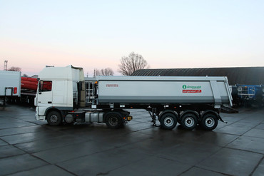 - Есть самосвальные полуприцепы объемом 31 м3, 34 м3, 38 м3, 50 м3